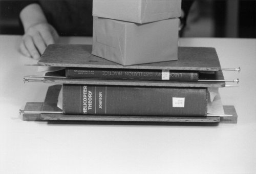 Metal-edged boards eliminate the need for knitting needles because one edge of each board is fitted with a metal strip that overhangs the board approximately 1/8" on each side. The resulting flange fits into the joint of a book and, under weight, exerts even pressure along it.